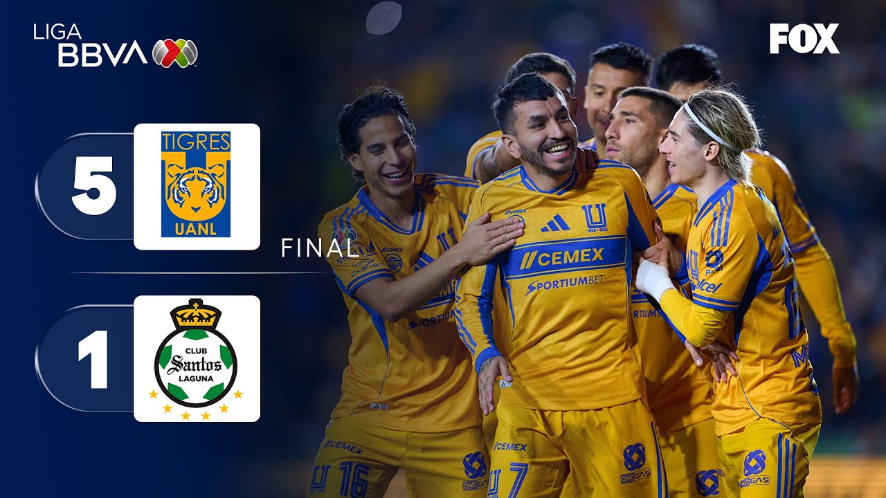Primera Division Liga MX Tigres UANL 5-1 Santos Laguna Highlights,Hot Video - Goaloo